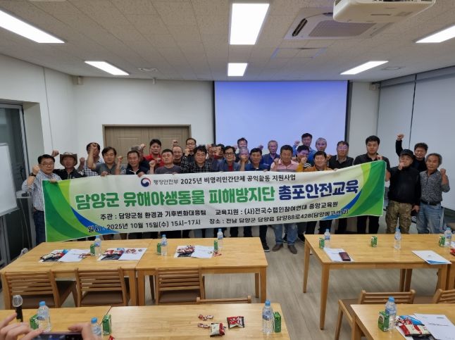 [비건뉴스=최지영 수습기자] 담양군은 지난 15일 에코교육관에서 유해야생동물 기동포획단을 대상으로 포획활동 시 준수사항과 총기사고 예방 등을 위한 안전교육을 진행했다.