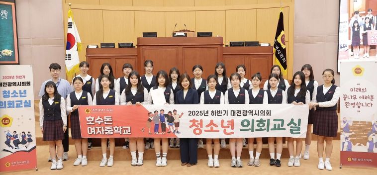 [비건뉴스=최지영 수습기자] 호수돈여자중학교 학생들이 16일, 대전시의회(의장 조원휘)를 방문해 하루 동안 시의회의 운영 과정을 직접 체험하는 뜻깊은 시간을 가졌다.
