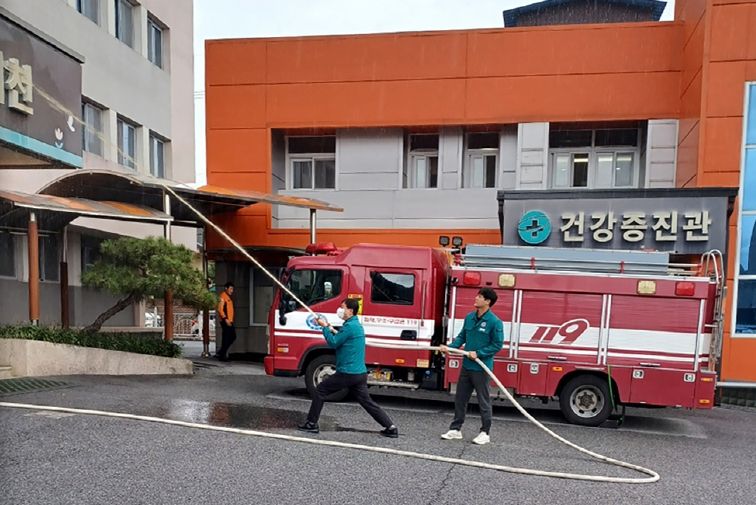 이날 훈련에는 119안전센터와 보건소 자위소방대 등 직원 70여 명이 참가해 화재 발생 시 119 신고요령과 관내 방송을 통한 상황전파훈련에 이어 소화기와 옥내 소화전을 활용한 초기진화 훈련을 실시해, 작은 불씨도 키우지 않는 골든타임의 중요성을 체감했다.