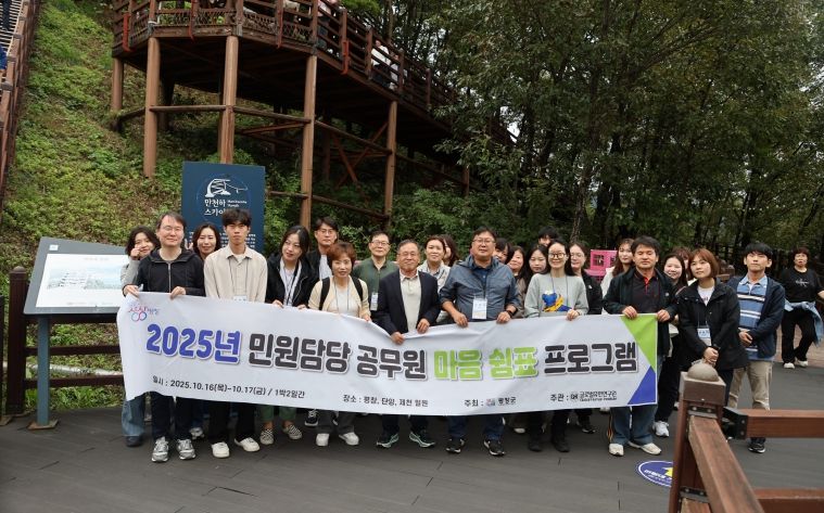 [비건뉴스=최지영 수습기자] 평창군은 민원 담당 직원 30여 명을 대상으로 충북 단양군 및 제천시 일원에서 16일과 17일 이틀에 걸쳐 2025년 민원 담당 공무원 마음 쉼표 프로그램을 운영한다.