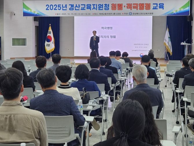 [비건뉴스=최지영 수습기자] 경산교육지원청은 10월 15일 13시 10분부터 경산교육지원청 학생교육지원관 2강당에서 청렴·적극행정 교육을 실시했다.