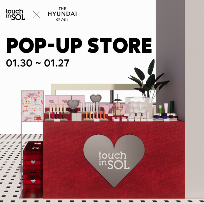 [비건뉴스=이용학 기자] ㈜본느의 글로벌 코스메틱 브랜드 ‘터치인솔(touch in SOL)’이 오는 30일(목)부터 2월 5일(수)까지 총 7일 간 더현대 서울 비클린에서 팝업스토어를 오픈해 운영한다고 밝혔다.