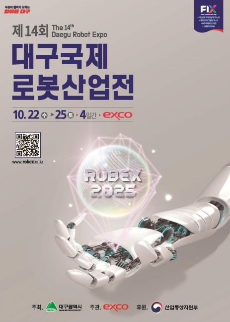 [비건뉴스=최지영 수습기자] 최첨단 로봇 기술과 최신 트렌드를 한자리에서 만나볼 수 있는 로봇산업 전문 전시회 ‘2025 대구국제로봇산업전(ROBEX 2025)’이 오는 10월 22일부터 25일까지 4일간 엑스코에서 열린다.