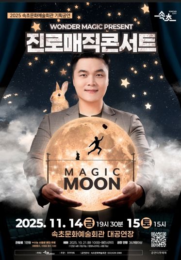 [비건뉴스=최지영 수습기자] 속초시는 오는 11월 14일 금요일과 11월 15일 토요일 이틀간 속초문화예술회관에서 최형배 마술사의 진로매직콘서트 MAGIC MOON을 선보인다.