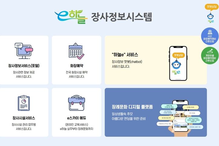 [비건뉴스=최지영 수습기자] 보건복지부 및 한국장례문화진흥원은 국가정보자원관리원 화재로 중단됐던 ‘e하늘장사정보시스템’ 운영이 10월 17일 0시부터 순차적으로 재개된다고 밝혔다.