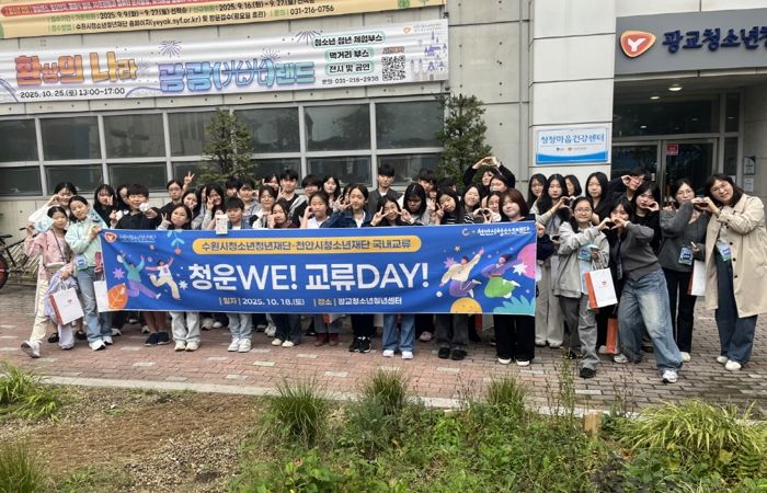 [비건뉴스=최지영 수습기자] 수원시청소년청년재단 동부청소년지역센터는 천안시청소년재단과 함께 2025 수원·천안 지역 청소년운영위원회 교류활동‘청운WE! 교류DAY’를 10월 25일 광교청소년청년센터에서 성황리에 마무리했다.