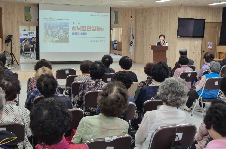 [비건뉴스=최지영 수습기자] 부산 서구가 지난 16일 서구 부민노인복지관에서 지역 주민 70여 명이 참석한 가운데‘고혈압, 당뇨병 등 심뇌혈관질환 및 노인천식 예방 관리 방법’을 주제로 건강 강좌를 개최했다.