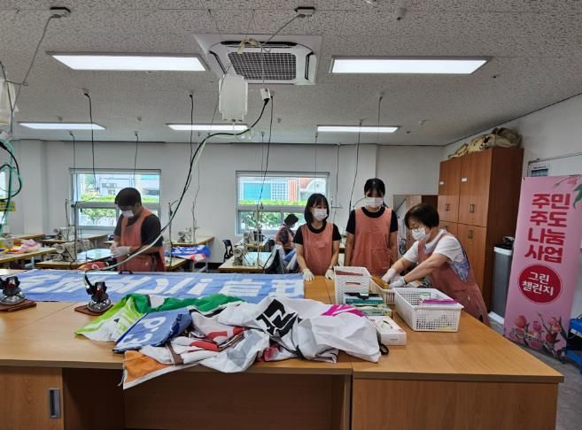 [비건뉴스=최지영 수습기자] 서부종합사회복지관은 20일 지역주민들의 재봉기술 재능기부로 지난 대선 홍보용 폐현수막을 활용하여 마대자루 158개를 제작하여 울주군시설관리공단에 전달했다고 밝혔다.