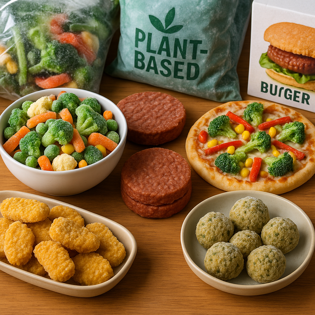 유럽 주요 대형마트의 냉동 진열대에는 식물성 즉석조리식, 육류·어류 대체품, 디저트 등 품목 다변화가 진행 중이다. 비욘드미트, 디스(THIS), 쿼른, 원플래닛피자 등 브랜드가 품질 경쟁을 주도하고 있으며, 노매드푸즈 같은 글로벌 기업과 전통 육가공 업체들까지 전략적 투자를 확대하고 있다. 이는 물류와 제조 인프라가 비교적 안정적인 냉동 카테고리의 특성과도 맞닿아 있다.