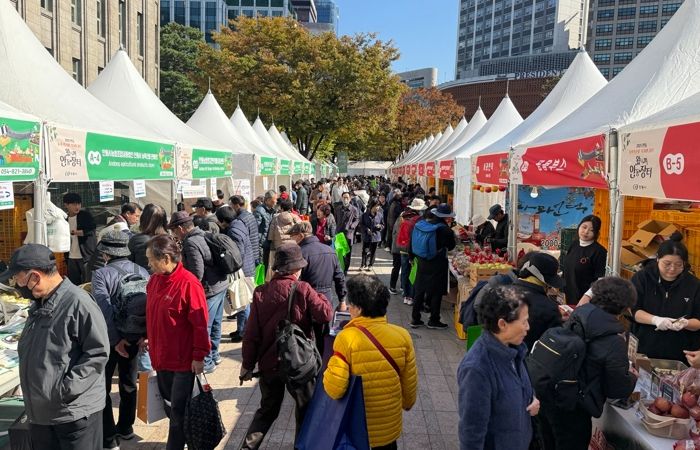 [비건뉴스=최지영 수습기자] 서울시청 앞 서울광장에서 열린 ‘2025 안동 농축특산물 직거래장터’가 10월 27일부터 30일까지 4일간 수도권 시민의 뜨거운 관심과 참여 속에 성황리에 막을 내렸다. 시중보다 저렴한 가격에 소비자들을 만날 수 있는 좋은 기회이자, 생산자와 직접 소통하며 신뢰할 수 있는 먹거리를 구매하는 시간이었다.