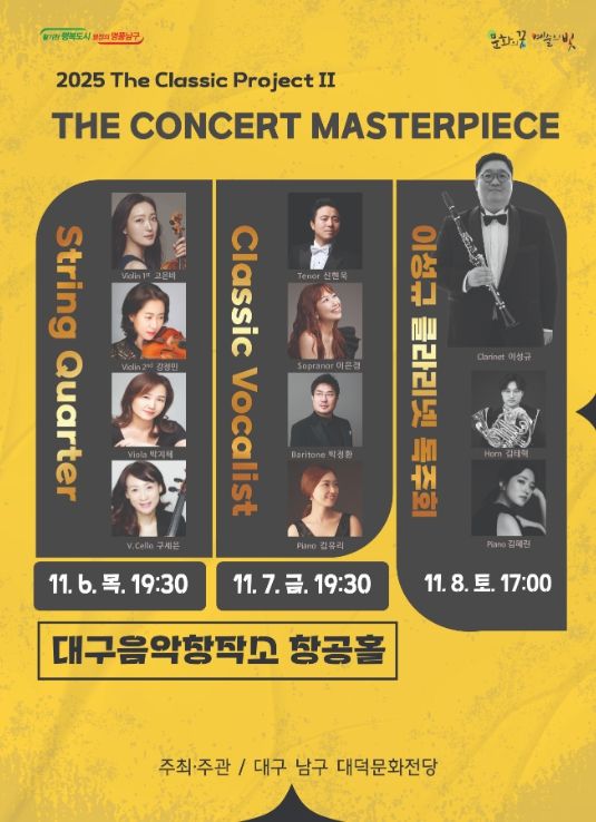 지난 6월 K-Classic 국악을 주제로 해금, 한국무용, 판소리로 구성한 '한국 전통의 미 樂(악)·舞(무)·歌(가)'에 이어 오는 11월 6일부터 8일까지 대구음악창작소 창공홀에서 펼쳐질 이번 시리즈는 [The Concert MASTER-PIECE] 란 타이틀로 관객들을 만난다.