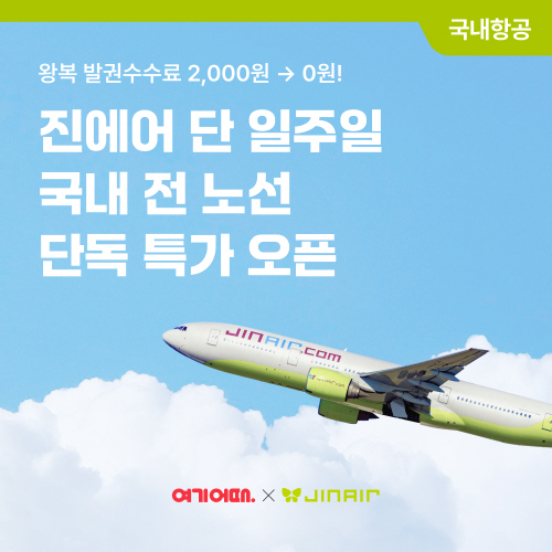[비건뉴스=김민정 기자] 여기어때가 진에어와 함께 국내 항공권 단독 특가 프로모션을 진행한다.