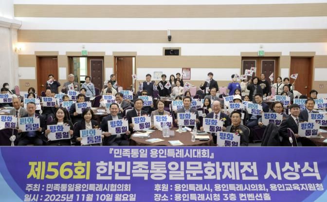 [비건뉴스=최지영 수습기자] 용인특례시는 10일 시청 컨벤션홀에서 민족통일 용인특례시협의회 주관으로 ‘민족통일 용인특례시대회와 제56회 한민족통일문화제전 시상식’이 열렸다고 밝혔다.