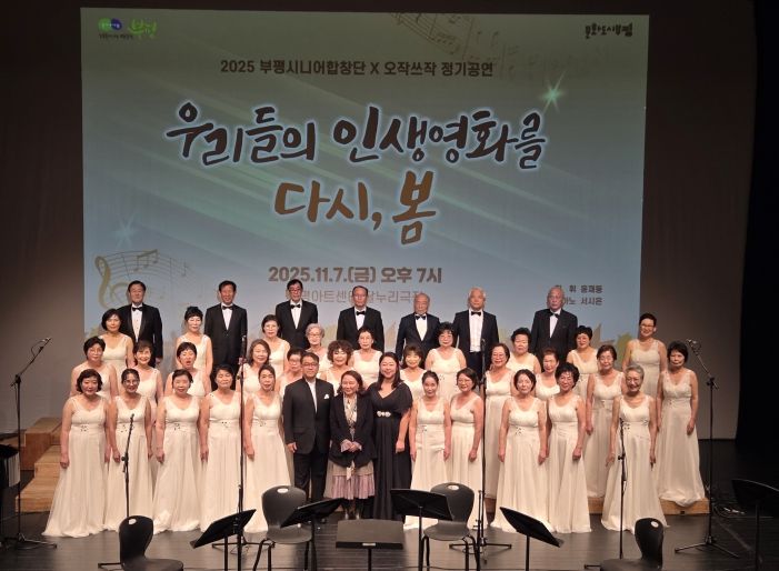 [비건뉴스=최지영 수습기자] 부평구 산곡노인문화센터는 지난 7일 부평아트센터 달누리극장에서 ‘제4회 부평시니어합창단X오작쓰작 정기공연-우리들의 인생영화를 다시 봄’을 개최했다.