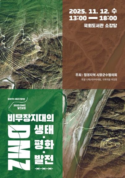[비건뉴스=최지영 수습기자] 접경지역시장·군수협의회는 오는 11월 12일 국회도서관(소강당)에서 “비무장지대의 생태·평화·발전”을 주제로 '2025 DMZ 발전포럼'을 개최한다. 이번 포럼은 올해 처음으로 열리는 행사로, 휴전 이후 70여 년간 소외되어온 접경지역의 조화로운 발전을 위해 필수적인 비무장지대(DMZ)에 대한 새로운 해석과 해외사례 분석을 통한 생태평화공원 조성 등 다양한 발전 방안을 제시할 예정이다.