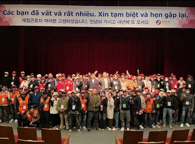 [비건뉴스=최지영 수습기자] 영양군은 지난 4월, 6월, 8월 MOU체결을 통해 입국한 베트남 및 라오스 출신 계절근로자 804명이 농번기 일손 부족 해소에 큰 역할을 한 뒤, 11월 2일부터 11일까지 8차례에 걸쳐 순차적으로 출국을 완료했다고 밝혔다.