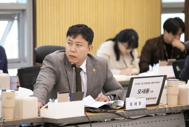[비건뉴스=최지영 수습기자] 경기도의회 교육행정위원회 오세풍 의원(국민의힘, 김포2)은 12일 경기도교육청 남부연수원에서 열린 2025년 교육행정위원회 행정사무감사에서 미디어교육센터의 운영 실태를 점검하며 “학교 수업과 연계된 교원 연수와 정신건강 프로그램도 함께 강화해야 한다”고 강조했다.
