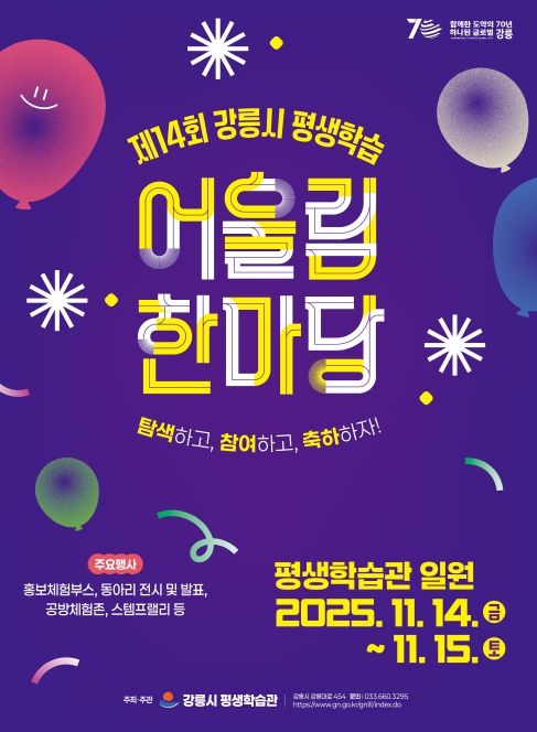 [비건뉴스=최지영 수습기자] 강릉시는 “탐색하고, 참여하고, 축하하자”를 주제로 한 '제14회 강릉시 평생학습 어울림 한마당' 행사를 오는 14일부터 15일까지 이틀간 강릉시 평생학습관 일원에서 개최한다.