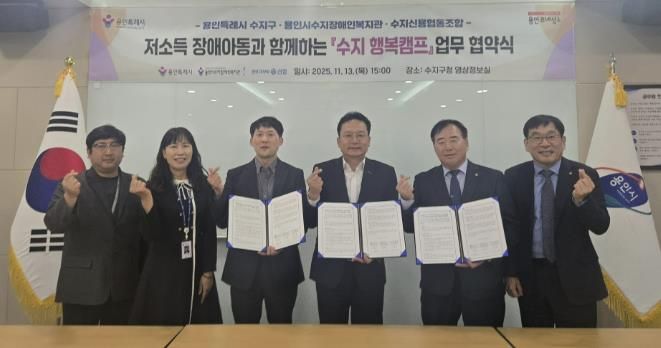[비건뉴스=최지영 수습기자] 용인특례시 수지구는 13일 용인시수지장애인복지관과 수지신용협동조합과 함께 저소득 장애아동의 복지 향상과 장애 인식 개선을 위한 ‘수지 행복캠프’ 추진 업무협약을 체결했다고 14일 밝혔다.