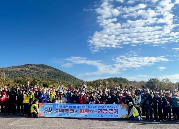 [비건뉴스=최지영 수습기자] 서귀포시 동부보건소는 11월 음주폐해 예방의 달을 맞아 16일 표선면 대록산 일대에서 ‘지역주민과 함께하는 건강걷기’ 행사를 개최했다.
