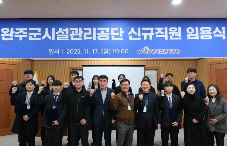 [비건뉴스=최지영 수습기자] 완주군시설관리공단이 17일, 신규직원 임용식을 갖고 2026년 위탁 사업대비를 위한 업무인수인계 절차에 본격 돌입했다.