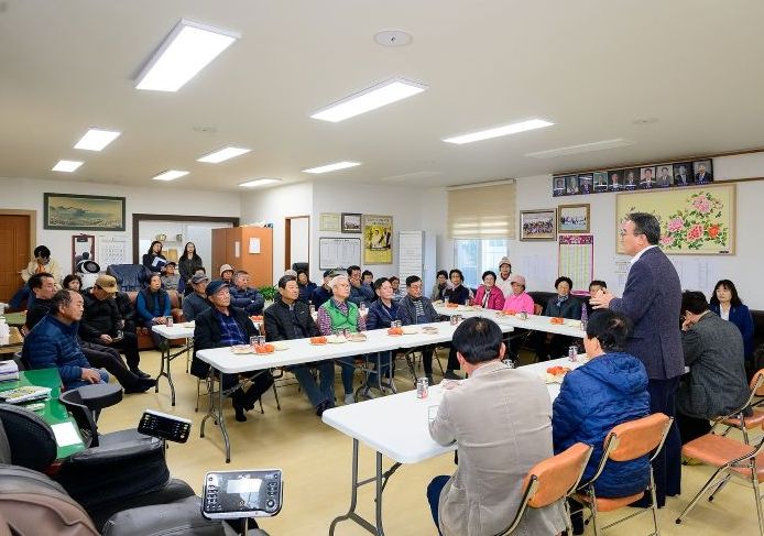 [비건뉴스=최지영 수습기자] 오순문 서귀포시장은 11월 18일 민생현장 방문으로 서귀포 해오름주간활동센터, 세화2리 경로당 그리고 양식어류 배합 사료공장인 대봉엘에프 영어조합법인을 차례로 방문했다.