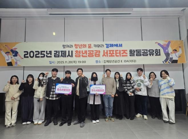 [비건뉴스=최지영 수습기자] 김제시는 지난 20일, 김제 청년공간 E :DA(이다)에서'2025년 청년 서포터즈 활동공유회'를 개최하고, 올해 서포터즈가 추진한 정책 제안과 다양한 활동을 공유했다고 밝혔다.