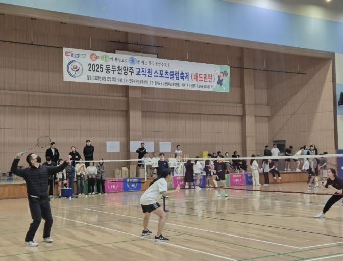 [비건뉴스=최지영 수습기자] 동두천양주교육지원청는 11월 20일, 동두천국민체육센터에서 관내 초·중·고 34개 학교 교직원 218명이 참여한 ‘2025년 동두천양주 교직원 스포츠클럽축제 배드민턴 경기’를 개최했다. 이번 행사는 교직원의 건강 증진과 더불어 학교 간 소통과 협력을 강화하기 위해 마련됐으며, 다양한 클럽이 참여해 활기찬 경쟁과 화합의 시간을 만들어냈다.