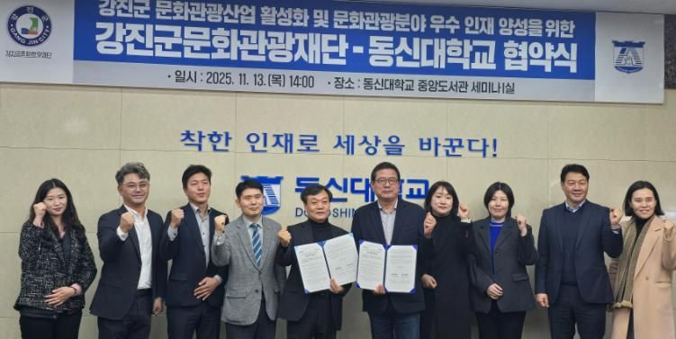 [비건뉴스=최지영 수습기자] 강진군문화관광재단이 최근 동신대와 문화관광산업의 미래 경쟁력 강화와 우수 인재 양성 상호협력에 관한 협약을 체결했다.