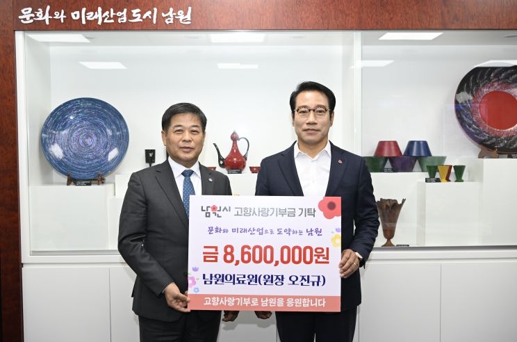 오진규 원장은 “남원의료원은 남원시민의 건강을 책임지는 공공기관으로서, 기부문화 확산과 지역 발전에 동참하고자 이번 단체 기부를 추진하게 됐다.