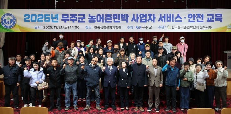 [비건뉴스=최지영 수습기자] 무주군은 지난 21일 무주읍 소재 전통생활문화체험관에서 '2025년 농어촌 민박 사업자 서비스·안전 집합교육'을 실시했다고 밝혔다.