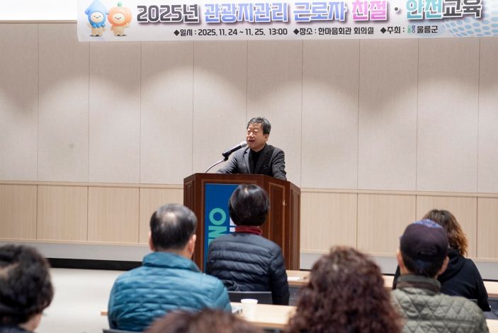 이번 교육은 관광지 운영의 핵심인 친절 서비스와 안전 대응 능력을 강화하고, 현장에서 실제로 활용할 수 있는 실무 중심의 역량을 높이기 위해 마련됐다. 친절 교육은 한국열린사이버대학교 유미인 특임교수가 맡았으며, 안전 교육은 울릉119안전센터가 진행했다.