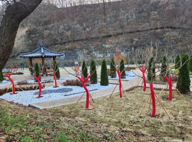 [비건뉴스=최지영 수습기자] 의성군은 지난 25일, 의성읍 원당삼거리 일대와 남대천 실외정원(크릭가든)에 다가오는 겨울을 대비해 가로수에 수목 보호대를 설치하고 월동 준비를 마쳤다고 밝혔다.