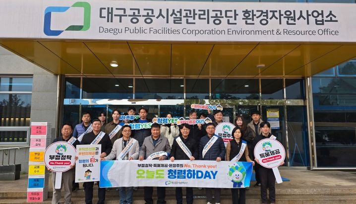 [비건뉴스=최지영 수습기자] 대구공공시설관리공단 환경자원사업소는 11월 25일, 청렴문화 확산과 지역사회 청렴도 향상을 위해 ‘청렴하DAY’ 협동캠페인을 진행했다.
