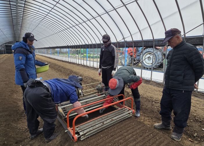 [비건뉴스=최지영 수습기자] 예천군은 26일, 감천면 석송로 소재 인삼 재배 농가에서 ‘내재해형 인삼 이중구조하우스’를 활용한 인삼 정식을 실시했다.