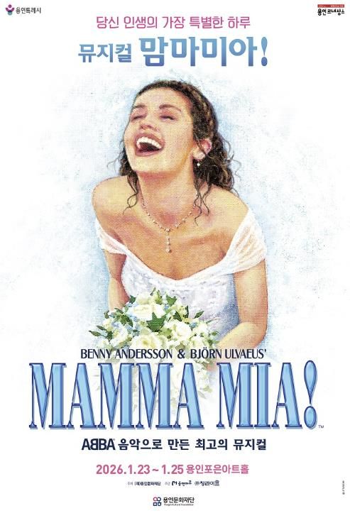 [비건뉴스=최지영 수습기자] 용인문화재단은 오는 2026년 1월 23일부터 25일까지 뮤지컬 ‘맘마미아!’를 용인포은아트홀에서 개최한다고 밝혔다. 관람 연령은 초등학생 이상으로, 겨울방학 기간 가족·친구·연인 등 남녀노소 누구나 함께 즐길 수 있는 대표 뮤지컬을 3일간 총 4회에 걸쳐 선보인다.