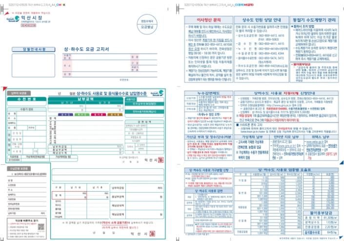 [비건뉴스=최지영 수습기자] 익산시는 시민들이 상·하수도 요금 정보를 보다 쉽게 확인할 수 있도록 고지서를 전면 개편해 오는 12월 고지분부터 적용한다.