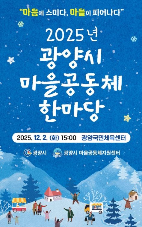 [비건뉴스=최지영 수습기자] 광양시는 오는 12월 2일 오후 3시, 광양국민체육센터에서 ‘2025년 광양시 마을공동체 한마당’을 개최한다고 밝혔다.