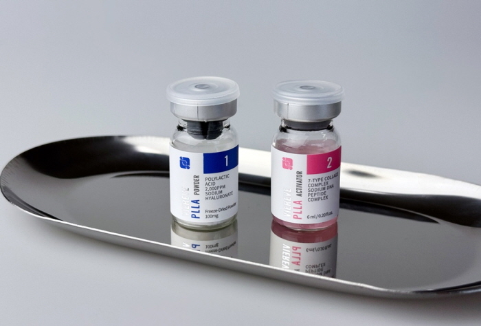 기술 구성은 1제 동결건조 파우더 형태의 PLLA와 2제 활성화 솔루션으로 이뤄져 있다. PLLA는 다공성 마이크로 스피어 구조로 제작돼 세포 간 상호작용을 고려했으며, 활성화 솔루션에는 펩타이드 성분과 저분자 히알루론산을 배합해 사용 직후의 피부 컨디션 개선을 보조하도록 구성됐다. 여기에 PDRN과 식물 유래 성분, 트라넥사믹애씨드, 글루타치온 등 복합 성분을 더해 제품 구성을 완성했다.