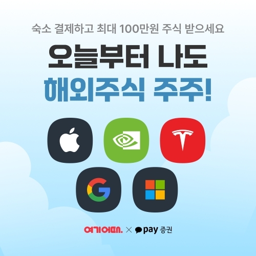 [비건뉴스=김민정 기자] 대한민국 대표 여행·여가 플랫폼 여기어때는 카카오페이증권과 함께 해외 주식을 제공하는 ‘오늘부터 나도 해외주식 주주’ 이벤트를 진행한다고 18일 밝혔다.