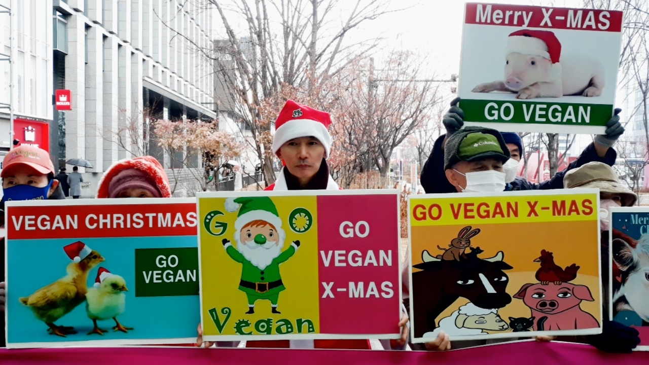 [V포토] “GO VEGAN CHRISTMAS” 비건 크리스마스 촉구 퍼포먼스 현장
