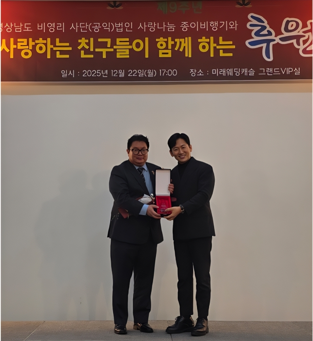 이번 행사는 (사)사랑나눔 종이비행기가 주최한 9번째 송년 후원회로, 매년 크리스마스를 앞두고 창원 지역 한부모가정과 다문화가정, 미혼모가정의 자립을 지원하기 위한 사업과 장학금 전달을 진행해 오고 있다. ㈜맑은하늘태양광은 매년 1억5000만 원 규모의 후원금을 지원하고 있으며, 권영찬 교수는 4년째 해당 행사의 사회를 맡아 지원 활동을 이어가고 있다.