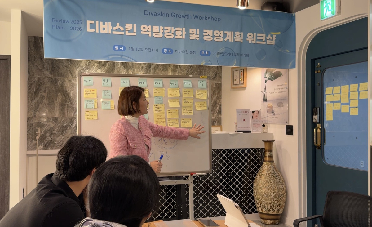디바스킨은 시술 중심 서비스에서 벗어나 피부 진단과 맞춤형 관리 체계를 기반으로 브랜드 신뢰를 구축해왔다. 워크숍에서는 각 지점이 동일한 브랜드 정체성을 공유하도록 ‘브랜드 비전 하우스’를 재정립하고, 이를 고객 경험 중심 전략으로 구체화하는 방안이 다뤄졌다.