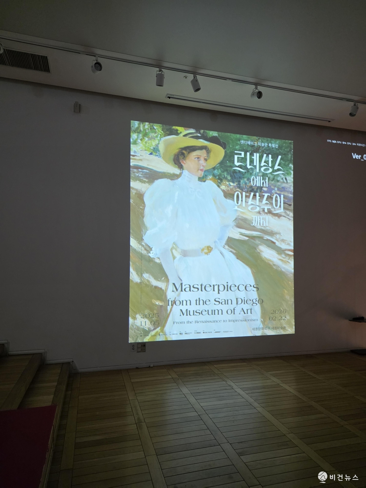 전시장 내부는 고전 건축을 연상시키는 기둥 구조와 붉은색 벽면을 활용해 초기 회화가 지닌 역사적 분위기를 강조했다. 관람 동선 초입에는 전시 제목과 소장처가 크게 제시돼 전시 성격을 분명히 드러내며, 내부 프로젝션과 안내 패널에는 인상주의 인물화 이미지가 배치돼 시대적 대비가 시각적으로 드러난다.