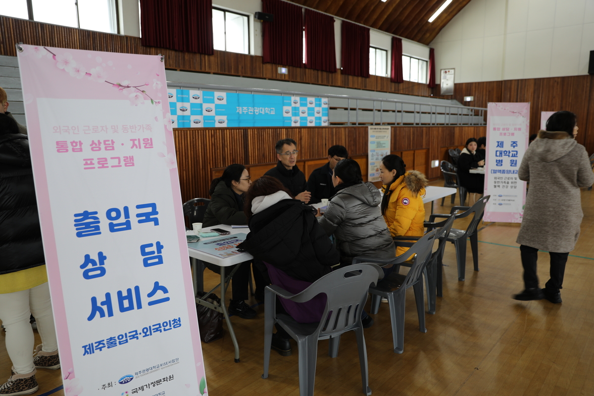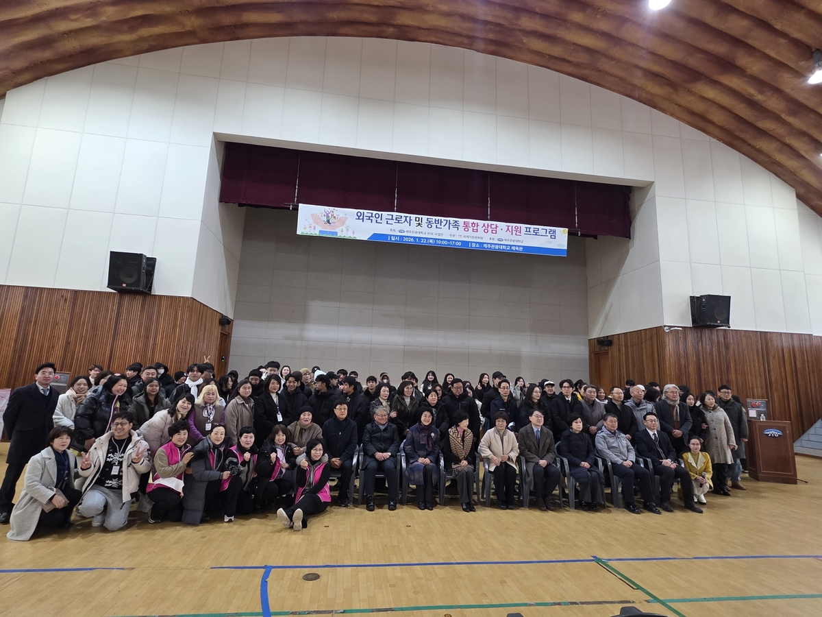 국제가정문화원과 제주관광대학교는 22일 제주관광대학교 체육관에서 ‘외국인 근로자 및 동반가족 통합 상담·지원 프로그램’을 운영했다고 밝혔다. 이번 행사는 지역혁신 중심 대학지원체계(RISE) 사업의 일환으로, 외국인 주민이 체류·법률·노무·의료·행정 등 생활 전반에서 겪는 어려움을 한 자리에서 상담받을 수 있도록 마련됐다.
