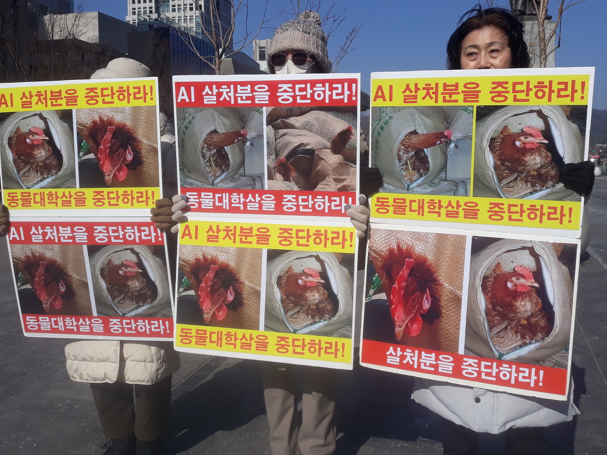 단체는 조류인플루엔자를 이유로 한 살처분 정책을 즉각 중단하고, 공장식 축산 구조 개선 등 근본적인 대책 마련에 나설 것을 촉구했다.