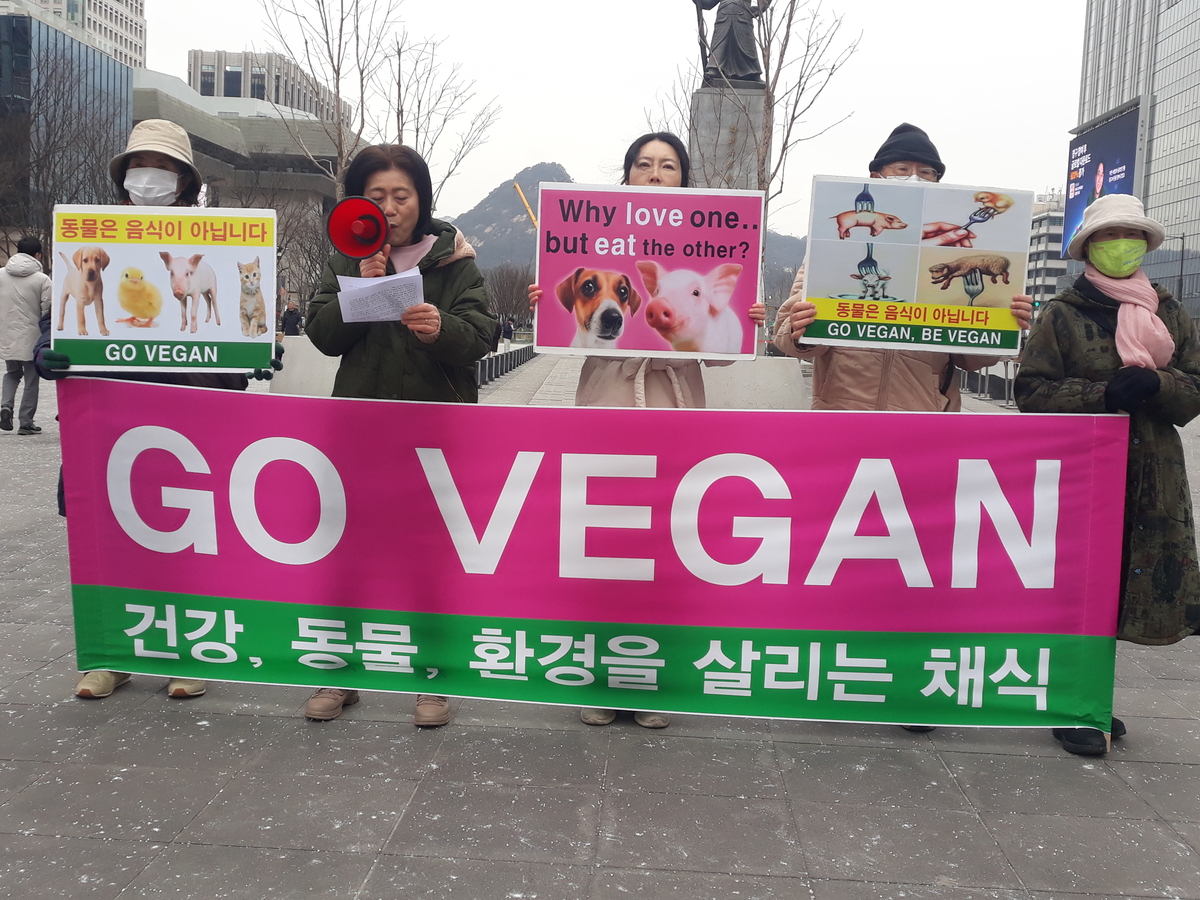 [비건뉴스] 한국채식연합은 24일 오후 서울 광화문 이순신동상 앞에서 ‘지구를 살리는 비건(VEGAN) 채식 촉구 기자회견’을 열고 비건 채식 실천을 촉구했다.
