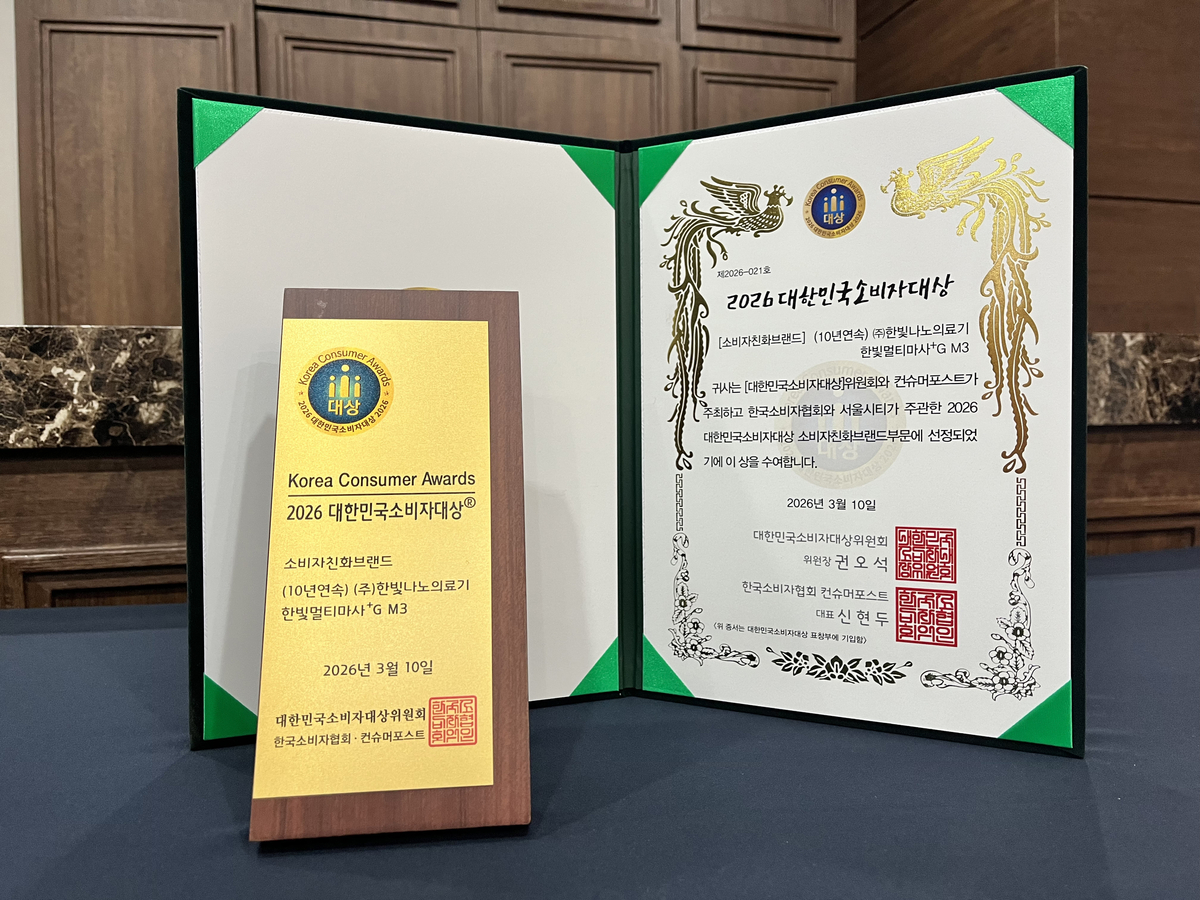 ㈜한빛나노의료기가 한국소비자협회가 주관한 ‘2026 대한민국 소비자대상’에서 소비자친화브랜드 부문을 10년 연속 수상했다고 12일 밝혔다.