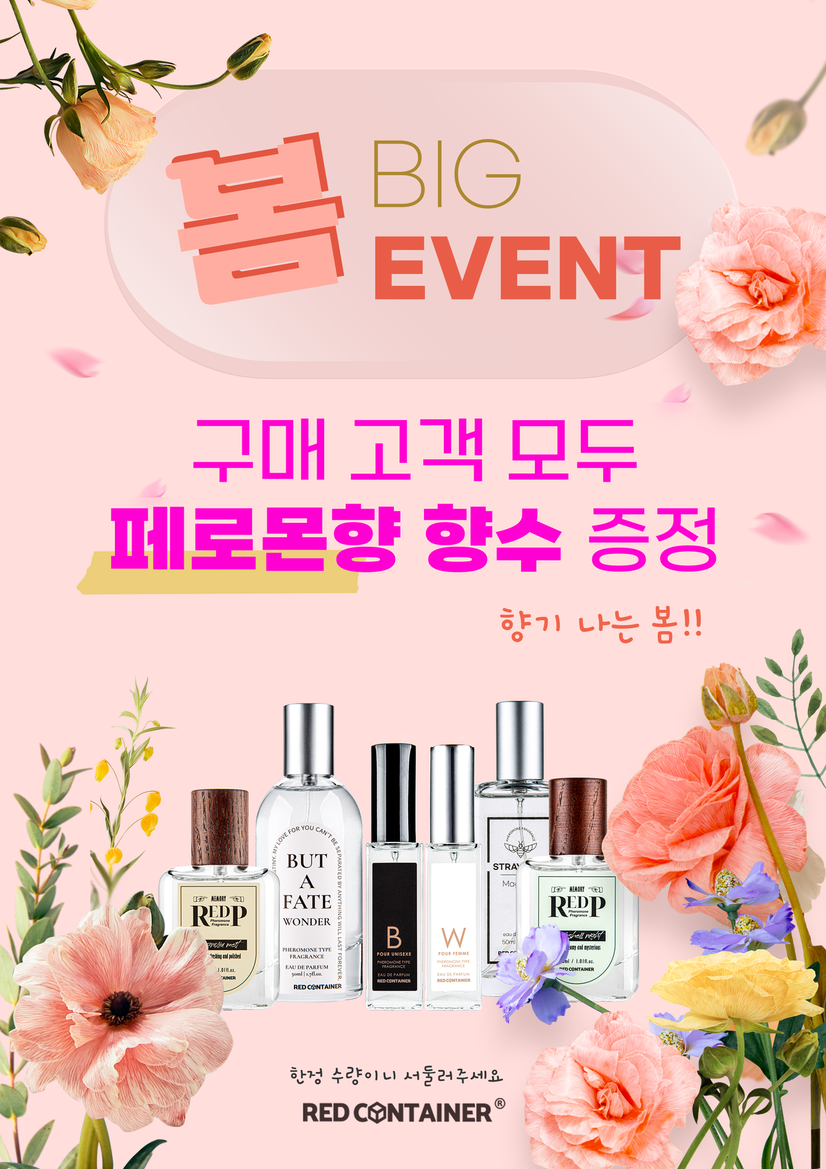 레드컨테이너가 봄 시즌을 맞아 온·오프라인 채널에서 구매 고객 전원에게 페로몬향 향수를 증정하는 이벤트를 진행한다고 18일 밝혔다.