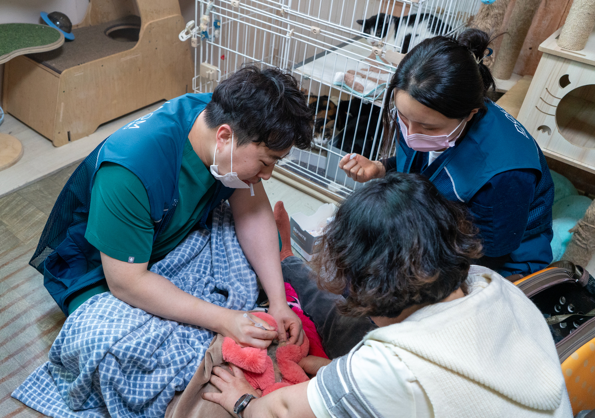 현장에는 돌봄동물병원 소속 수의사와 직원, 녹십자수의약품 가치그린봉사단이 참여해 쉼터 내 고양이들의 건강검진과 사육 환경 개선 작업을 병행했다.